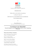 This dissertation details thus two main contributions. The first one is the development and implementation of CertiCloud, a CC framework which relies on the concepts developed in the Trusted Computing Group (TCG) together with hardware elements, i.e., Trusted Platform Module (TPM) to offer a secured and reassuring environment within IaaS platforms. At the heart of CertiCloud reside two protocols: TCRR and VerifyMyVM. When the first one asserts the integrity of a remote resource and permits to exchange a private symmetric key, the second authorizes the user to detect trustfully and on demand any tampering attempt on its running VM. These protocols being key components in the proposed framework, their analysis against known cryptanalytic attacks has been deeply analysed and testified by their successful validation by AVISPA [1] and Scyther [66], two reference tools for the automatic verification of security protocols.