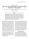 [en] BACKGROUND: Heart failure (HF) and atrial fibrillation (AF) are common disorders that frequently occur together and are associated with an increased risk of thromboembolism. This thromboembolic risk may be reduced by anticoagulation with warfarin but not without introducing new hemorrhagic risks. METHODS AND RESULTS: Current guidelines recommend the use of anticoagulation in patients with HF and chronic AF and paroxysmal AF (PAF) that is symptomatic or frequent and prolonged enough to be detected by electrocardiogram. However, the evidence supporting these recommendations is weak and does not take account of research indicating that the prothrombotic risk is higher in more severe HF. CONCLUSIONS: An area not addressed by current guidelines is anticoagulation in patients with HF and short, asymptomatic episodes of AF. These issues need to be resolved with further studies using implanted devices to detect such asymptomatic PAF.