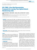[en] This paper presents DFL-TORO, a novel Demonstration Framework for Learning Time-Optimal Robotic tasks via One-shot kinesthetic demonstration. It aims at optimizing the process of Learning from Demonstration (LfD), applied in the manufacturing sector. As the effectiveness of LfD is challenged by the quality and efficiency of human demonstrations, our approach offers a streamlined method to intuitively capture task requirements from human teachers, by reducing the need for multiple demonstrations. Furthermore, we propose an optimization-based smoothing algorithm that ensures time-optimal and jerk-regulated demonstration trajectories, while also adhering to the robot’s kinematic constraints. The result is a significant reduction in noise, thereby boosting the robot’s operation efficiency. Evaluations using a Franka Emika Research 3 (FR3) robot for a variety of tasks further substantiate the efficacy of our framework, highlighting its potential to transform kinesthetic demonstrations in manufacturing environments. Moreover, we take our proposed framework into a real manufacturing setting operated by an ABB YuMi robot and showcase its positive impact on LfD outcomes by performing a case study via Dynamic Movement Primitives (DMPs).