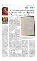 Die Personenstandsaufnahme vom 10. Oktober 1941. Teil 1: Seit über 80 Jahren incognita im Archiv