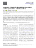 [en] It is debated whether there is an abstract, format-independent representation of number in the human brain, eg whether "four" shares a neural representation with "4." Most previous studies have used magnitude to investigate this question, despite potential confounds with relative quantity processing. This study used the numerical property of parity. Electroencephalogram recordings were collected from participants performing a fixation-cross task, while viewing 20-s sequences of alternating even and odd Arabic numerals presented at 7.5 Hz: responses to parity were selectively tagged at the asymmetry frequency of 3.75 Hz. Parity asymmetry responses emerged significantly over the occipito-temporal (OT) cortex, and were larger than control asymmetry responses to isolated physical stimulus differences, replicating a previous study. Following 20-s adaptation to cross-font even numerals, larger parity responses were recorded over the right OT cortex, further supporting distinct representations of even/odd numbers; there was no corresponding control adaptation effect. Interestingly, adaptation to even canonical dot stimuli also produced significantly larger parity asymmetry responses; adaptation to even number words trended non-significantly. These results are in line with parity being processed automatically, even across formats. More generally, they suggest that parity is a useful means for probing abstract representation of number in the human brain.