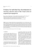 [en] Two areas in the human occipito-temporal cortex respond preferentially to faces: 'the fusiform face area' ('FFA') and the 'occipital face area' ('OFA'). However, it is unclear whether these areas have an exclusive role in processing faces, or if sub-maximal responses in other visual areas such as the lateral occipital complex (LOC) are also involved. To clarify this issue, we tested a brain-damaged patient (PS) presenting a face-selective impairment with functional magnetic resonance imaging (fMRI). The right hemisphere lesion of the prosopagnosic patient encompasses the 'OFA' but preserves the 'FFA' and LOC. Using fMRI-adaptation, we found a larger response to different faces than repeated faces in the ventral part of the LOC both for normals and the patient, next to her right hemisphere lesion. This observation indicates that following prosopagnosia, areas that do not respond preferentially to faces such as the ventral part of the LOC (vLOC) may still be recruited to subtend residual perception of individual faces.
