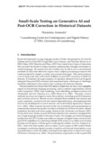 ![]() | ARMASELU, F. (04 December 2025). Small-Scale Testing on Generative AI and Post-OCR Correction in Historical Datasets. Digital Humanities Benelux Journal, 7, 123-135. doi:10.5281/zenodo.17648380 Peer Reviewed verified by ORBi |