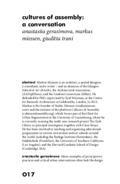 ![]() | MIESSEN, M., Gerasimova, A., & Trani, G. (2025). Cultures of Assembly: a conversation. Villardjournal. Peer Reviewed verified by ORBi |